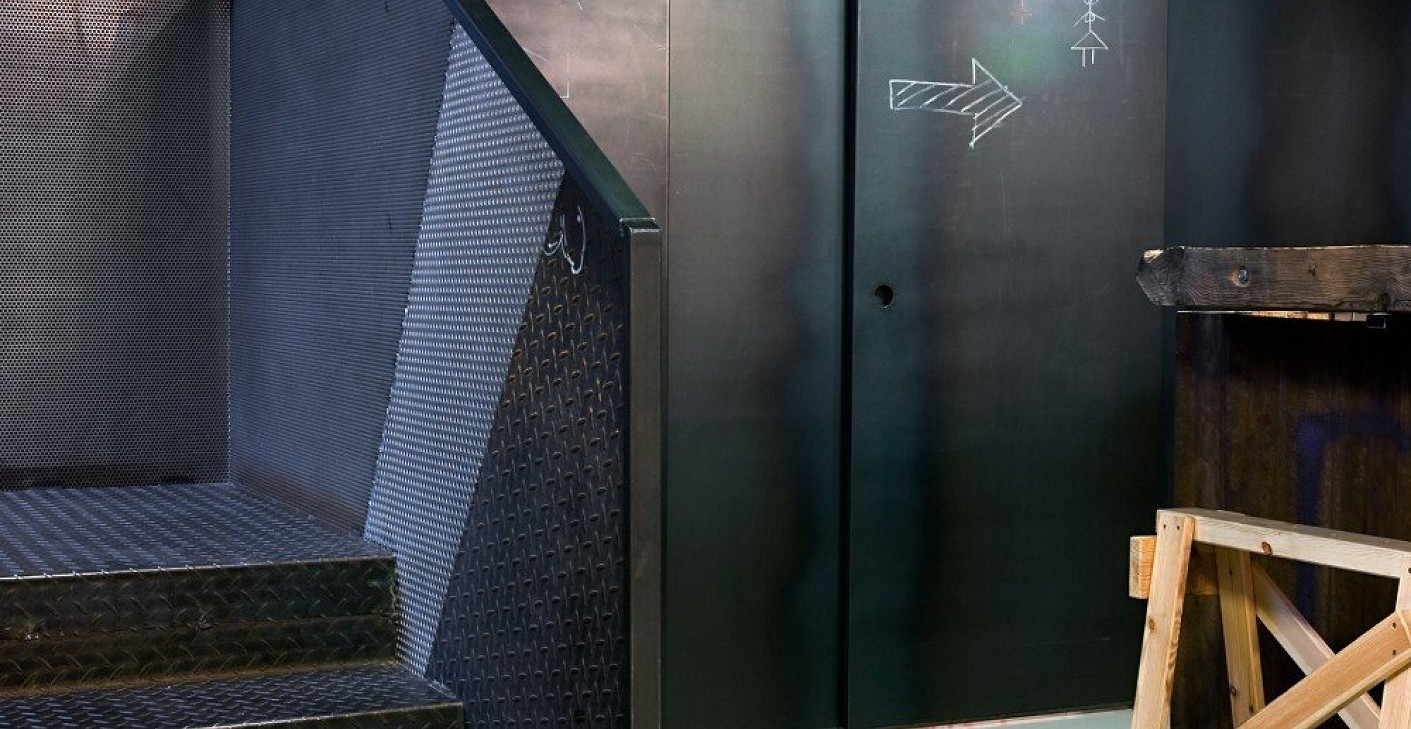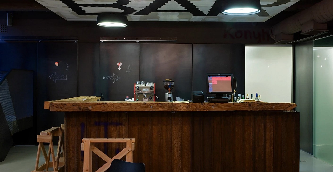 The semi-basement, 70 m² space in Újlipótváros has been transformed into a professional gastronomic creative workshop, functioning both as a base kitchen and a restaurant. The spatial organization follows the logic of kitchen processes; a transparent, permeable connection is established between the dining area and the back-of-house functions, providing a continuous spatial experience.