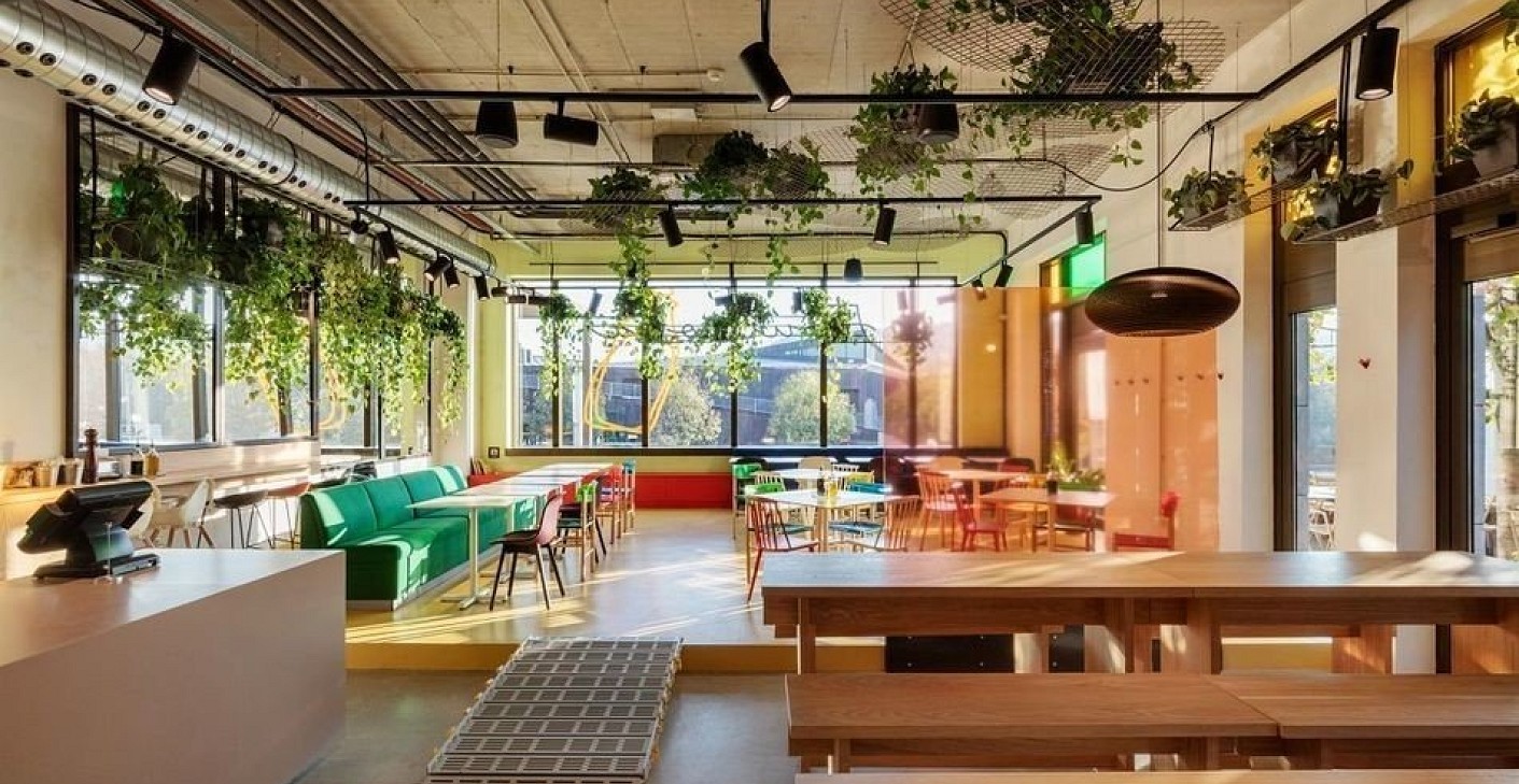Fruccola opened its third location in MOM Park, realized according to the designs of Dóra Fónagy. The sustainable, eco-friendly communal space expresses the owners’ philosophy through the language of interior design. By Zsuzsanna Molnár.