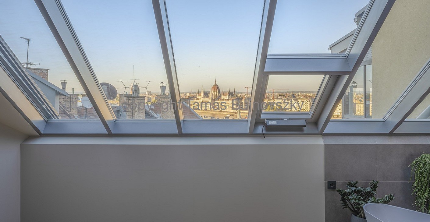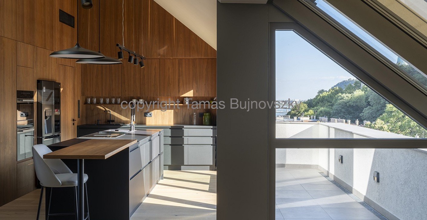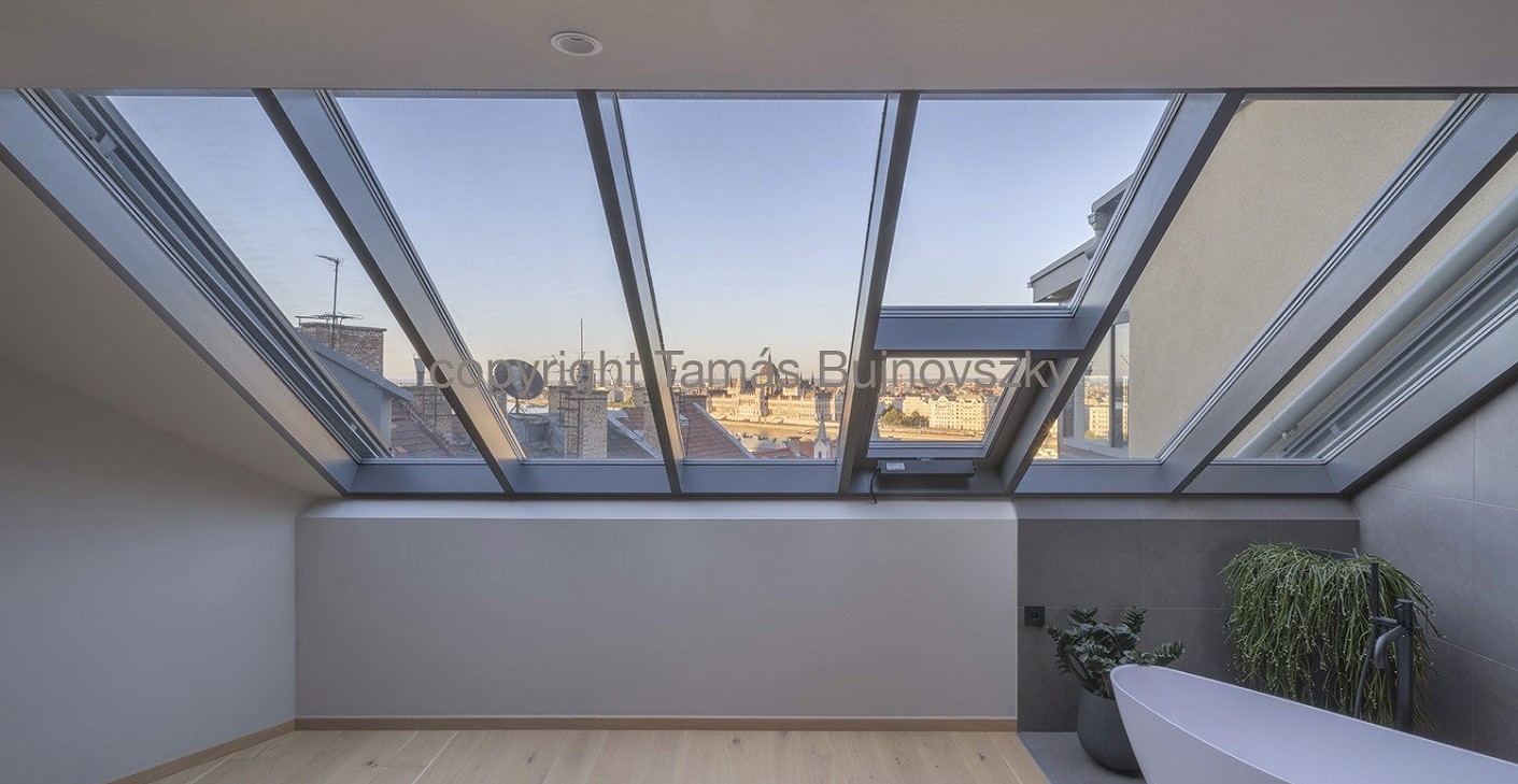 A nagyléptékű tetőtér és az egyedülálló, közel 80 m²-es panorámaterasz ritka lehetőséget