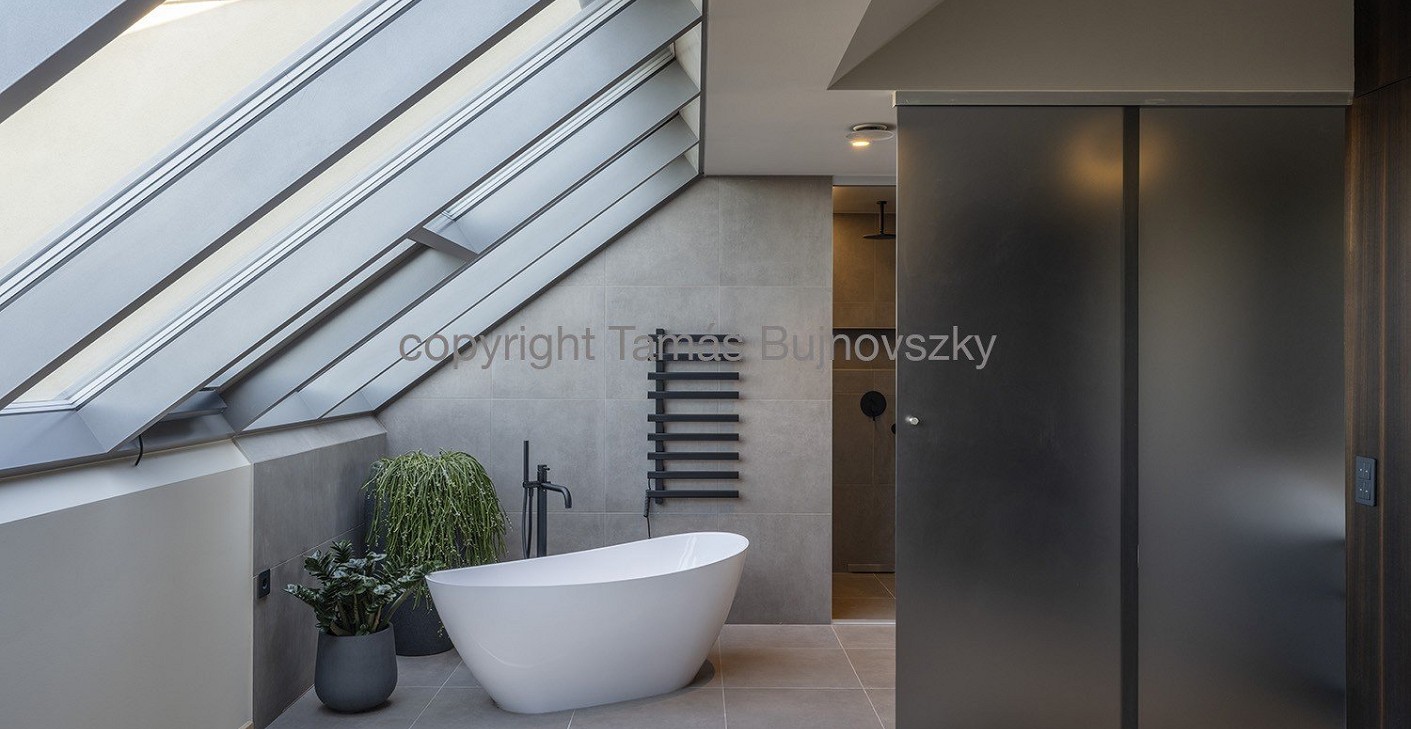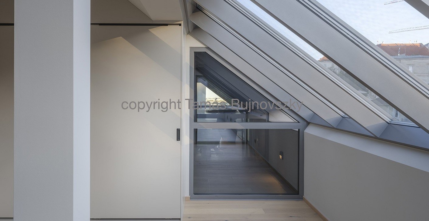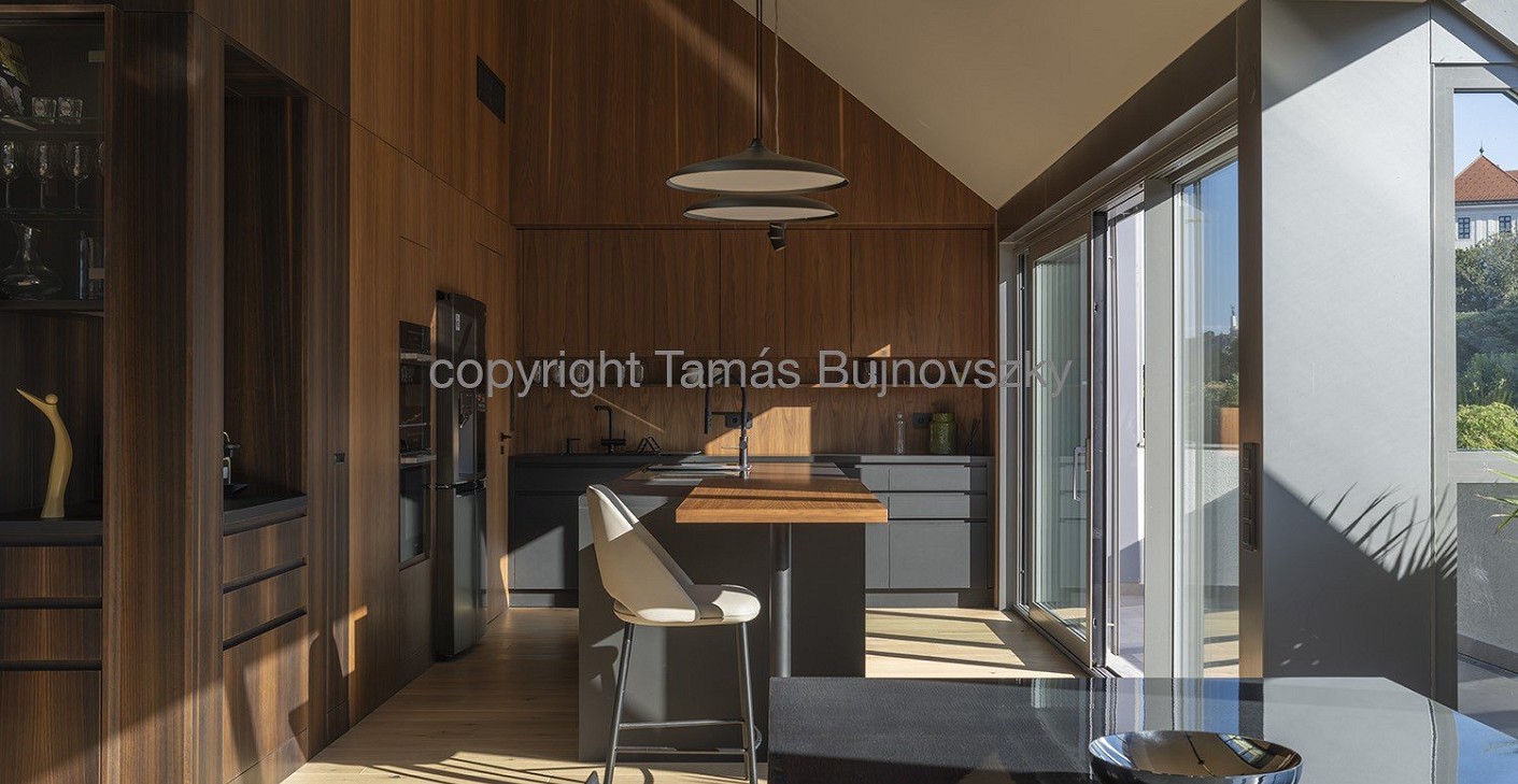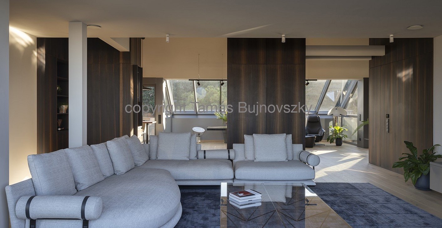 A nagyléptékű tetőtér és az egyedülálló, közel 80 m²-es panorámaterasz ritka lehetőséget