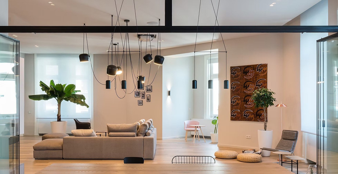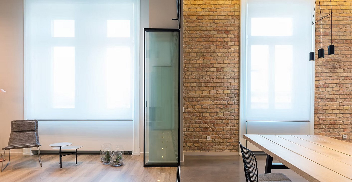 A Budapest ikonikus zsidónegyedében, egy századfordulós épület harmadik emeletén két önálló lakás összenyitásával jött létre ez a 75 m²-es lakás, melynek ablakai a Zsinagóga temetőkertjére néznek. A sarokpozíció és az örökölt, tágas „szalon” terek összeolvasztása különösen nagyvonalú, nyitott térstruktúrát eredményezett, amelyben a flexibilis, nagyméretű üvegfelületek stratégiai szerepet kaptak. A kétgyermekes család számára komplex térrendszert alakítottunk ki: a körbefutó, teljes falfelületet burkoló, integrált gardróbszekrények, tárolók és a külön háztartási helyiség biztosították a kényelmes, minden részletre kiterjedő funkcionalitást. Az így felszabadult, jól szervezett nagyméretű terekben mobil, rugalmasan használható bútorzónák kaptak helyet – a változó családi igényekhez alkalmazkodva.